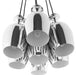 Let benevolence flow forth from the rafters with the Goodwill Chandelier. Seven polished steel wine cups contain vast amounts of light and goodness with a chandelier that never ceases to innovate your surroundings. Height adjustable with a push button, bestow illuminated generosity with this chandelier perfect for contemporary, modern, vintage modern, and other transitional decors.
