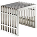 Straight lines were once deemed the realm of strict logic. This conduit design accomplishes something quite profound. It blends linear components with a pleasantly stainless steel tubular effect. Modernism used to be about extremes. Wild shapes and patterns that don’t dare resemble its predecessors. We’ve reached an age of maturity of sorts. We appreciate style, but all the more, we respect those designs that represent a blending of cultures. The Gridiron tubular stainless steel bench is famous not for its radical shape, but for the strategic transcendence that it provides. Gridiron is perfect for reception rooms, living and lounge areas, and any other place in need of transformation.