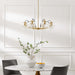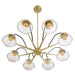 The Hanna 8-Light Chandelier brings relaxed grandeur into your living, bedroom, dining room, or kitchen. The organic intrigue of this satin brass chandelier delights as much as it illuminates. Glass globes suspended in satin brass rings extend from a star-shaped constellation of rods and convey movement and light in this enchanting hanging light fixture. This globe chandelier requires professional installation and is compatible with dimmer switches (not included). Hanna Pendant Light requires 8 E26 bulbs, 25W max, G45, or LED equivalent (not included).
