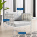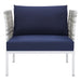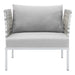 Engage life with Harmony Outdoor Patio Armchair. Enjoy casual conversation under the open sky with an all-weather waterproof outdoor chair from a versatile furniture set that delivers an exceptional outdoor porch, patio, balcony or garden experience. An exceptional modern outdoor furniture set that exceeds expectations, Harmony Patio Armchair comes with synthetic rattan seat back weave, square powder coated aluminum bases, Sunbrella® cushions, and non-marking foot caps. An outside chair that arranges according to the spontaneous needs of your guests, set your sights on open and inspired moments with the Harmony Outdoor Patio Collection.