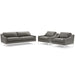 Center your space with the Harness Sofa & 2 Armchair Set. Featuring soft leather upholstery, Harness comes with dense foam padded seat cushions, supportive cotton-filled back pillows, a sinuous spring support system, and a polished stainless steel frame with non-marking foot caps. Perfect for the living room, meeting room or recreation area, this set fuses modern intrigue with timeless appeal for a sleek low-profile couch that completes the look of any vintage or contemporary modern home or apartment. Cushions remove for easy cleaning.