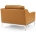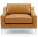 Center your space with the Harness Leather Armchair. Featuring soft leather upholstery, Harness comes with a dense foam padded seat cushion, supportive cotton-filled back pillow, a sinuous spring support system, and a polished stainless steel frame with non-marking foot caps. Perfect for the living room, bedroom or entryway, this streamlined accent lounge armchair fuses modern intrigue with timeless appeal for a sleek low-profile chair that completes the look of any vintage or contemporary modern home or apartment. Cushions remove for easy cleaning. Chair Weight Capacity: 300 lbs.