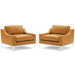 Center your space with the Harness Leather Armchair Set of 2. Featuring soft leather upholstery, Harness comes with a dense foam padded seat cushion, supportive cotton-filled back pillow, a sinuous spring support system, and a polished stainless steel frame with non-marking foot caps. Perfect for the living room, bedroom or entryway, this streamlined accent lounge armchair set fuses modern intrigue with timeless appeal for a sleek low-profile chair that completes the look of any vintage or contemporary modern home or apartment. Cushions remove for easy cleaning.