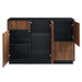 Merge sophistication and utility with the Holden 47” Sideboard. Constructed from MDF and durable particleboard, this sideboard features a wood grain laminate on its cabinets and drawers, bestowing a rustic flair that complements any contemporary setting. Experience modern convenience with push-to-open cabinetry and thoughtfully designed shelving behind three hinged doors. Complete with three full-glide drawers, and resting on a sleek plinth base, the versatile storage solutions of Holden's design allow it to serve as a fashionable buffet table, an urban-chic sideboard, or high TV stand supporting flat screen TVs up to 52". Assembly Required. Weight Capacity: 145 lbs. Please Note: When placing the TV directly on the unit, we recommend anchoring it in place.