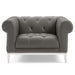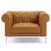 Rollick in the luxurious expanse of the Idyll Leather Chesterfield Armchair. Featuring soft leather upholstery, rolled arms and tufted button accent details, dense foam padding, and a sinuous spring system for responsive support, Idyll creates a lushly comfortable seating environment that invites lingering conversations . This living room chair comes with elegant leather upholstery in this designer couch sure to become the focal point of your office. Supported by a sturdy polished stainless steel base, enhance your entryway and office with the timeless look of this vintage sofa couch. Weight Capacity: 300 lbs.