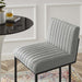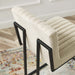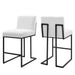 Inspire retro design and modern style in your dining area with the Indulge Channel Tufted Counter Stools. Mid-century inspired channel tufting flows effortlessly into the matte black stainless steel sled base of this dining counter stool set of 2. Covered in soft polyester fabric, these upholstered counter bar stools are complete with dense foam padding creating a comfortable, supportive place to sit while dining. Bring contemporary style to a kitchen or dining area with this tufted counter bar stool set. Includes non-marking foot caps. Counter Bar Stool Weight Capacity: 330 lbs.