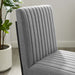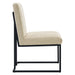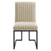 Inspire retro design and modern style in your dining room with the Indulge Channel Tufted Dining Chair. Mid-century inspired channel tufting flows effortlessly into the matte black stainless steel sled base of this dining accent chair. Covered in soft polyester fabric, this upholstered chair is complete with dense foam padding creating a comfortable, supportive place to sit while dining. Bring contemporary style to your living space, dining room, lounge area, or home office with this dining chair. Includes non-marking foot caps. Chair Weight Capacity: 330 lbs.