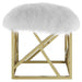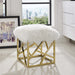 Beautify your decor with the Intersperse Ottoman. Boasting a captivating design, Intersperse features a polished gold colored stainless steel base, a luxurious white sheepskin top, and non-marking footpads that help protect your flooring. A welcome addition to the modern bedroom or living space, Intersperse combines comfort and style with a supportive seat cushion and weight capacity up to 331 lbs. No assembly required.
