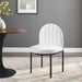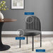 Reinvent your dining room decor with the vintage glamour of the Isla Channel Tufted Upholstered Fabric Dining Room Side Chair. Featuring a vintage clamshell design and the bold lines of channel tufted accents, the Isla Dining Accent Chair is a piece to be remarked upon by guests and friends. Dense foam padding provides a comfortable seat, while soft and durable polyester fabric upholstery creates a luxe elegance for long-lasting use. The curved matte black stainless steel frame on the Isla Side Chair has four legs with non marking foot caps to protect flooring. Chair Weight Capacity: 331 lbs.