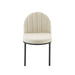 Reinvent your dining room decor with the vintage glamour of the Isla Channel Tufted Upholstered Fabric Dining Room Side Chair. Featuring a vintage clamshell design and the bold lines of channel tufted accents, the Isla Dining Accent Chair is a piece to be remarked upon by guests and friends. Dense foam padding provides a comfortable seat, while soft and durable polyester fabric upholstery creates a luxe elegance for long-lasting use. The curved matte black stainless steel frame on the Isla Side Chair has four legs with non marking foot caps to protect flooring. Chair Weight Capacity: 331 lbs.