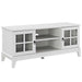 Invite the provincial charm of the Isle 47” TV Stand to transform your living space. Made of sturdy particleboard and MDF, Isle’s coastal contemporary design features dual windowpane cabinets with adjustable shelves and a large open center area for media storage. Complete with cable management and an adjustable center shelf, the contemporary design of Isle keeps your visual space clean. Isle is a refreshing lifestyle accent piece with a coastal vibe perfect for the modern home. Accommodates flat screen TVs up to 50”