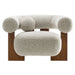 With a nod to retro aesthetics, the Jace Accent Chair stands out with its modern lines and inviting presence. This sofa chair features a curved U-shaped backrest and is supported by three sturdy ash wood legs that feature a rectangular, open-frame that mirrors the chair's chic aesthetic. Upholstered in textured boucle fabric with a tightly looped design that adds depth and visual interest, the Jace Single Sofa Chair complements both vintage and contemporary decor. The generously padded oversized seat of this barrel accent chair provides ultimate comfort, while the included round accent pillow adds an extra touch of style and support. Whether you’re looking for a comfy living room chair, a reading chair for the bedroom, or a statement chair for a cozy corner, this round back club chair updates your home decor. Equipped with plastic glides that offer floor protection, the Jace Round Boucle Armchair requires no assembly, allowing you to enjoy this stylish oversized chair as soon as it arrives. Weight Capacity: 331 lbs.