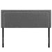 Adorn your bed of choice with the elegantly designed Modway Jessamine Fabric Upholstered King Headboard. Designed with two rows of silver-accented nail button trim, Jessamine King Headboard comes finely upholstered with soft linen fabric, has a solid wood frame, adjustable wood legs, and dense foam padding for ultimate support. Rejoice with a contemporary design that admirably complements your bedroom décor and fits most King beds.
