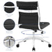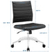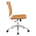 Steer the course and sail to an island called style. Jive is the result of chair makers who decided to design a chair that just works. Functionally, it is a pleasure to sit in as the durable ribbed vinyl back provides natural posture support. The seat cushion comes well padded, while the armless construction makes this a perfect piece for conference rooms and desk work. Jive’s chrome-plated aluminum base is fitted with five dual-wheel casters, while a tension knob and tilt lock allow for easy back position adjustments. This is a chair made for the modern office and a welcome embodiment of the spirit of progress and determination.