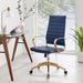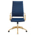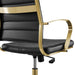 Embrace ergonomic comfort with the Jive Executive Managerial Tall Highback Office Chair. Elevating the decor of any modern office, Jive provides ergonomic lumbar support for your back as well as ribbed faux white leather sling seating that conforms to your body's sitting position. Jive comes with an easy one-touch height adjustment, a 360ΒΊ swivel gold stainless steel base, and five dual wheel casters for easy mobility. The luxe modern design brings a fresh, modern aesthetic to the conference table, executive desk, or home office setting.