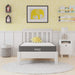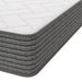 Get a good night's sleep with the Kate Mattress, designed with comfort in mind. Featuring an integrated Bonnell spring system that combines the classic buoyancy of steel springs with a luxurious 0.4” cushioning foam layer, this mattress is supportive and plush. Enhancing comfort, Kate boasts two felt liners, one placed above the springs and one below, to evenly distribute weight and relieve pressure on hips, back, and shoulders. Complete with a gray fabric fire-resistant barrier that has been tested to ensure it meets safety standards, the Kate Twin Mattress is perfect for a child's bedroom, guest room, college dorm, or studio apartment. Shipped conveniently compressed and rolled within a portable box for straightforward delivery and setup, it typically takes 2 to 3 hours for the mattress to fully expand. This mattress comes backed by a 10-year warranty. Box spring or foundation is optional.