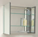 This 30" medicine cabinet features mirrors everywhere. The edges have mirrors and also on the interior of the medicine cabinet. The inside features two tempered glass shelves. Can be surface mounted or recessed into the wall.