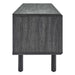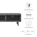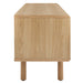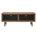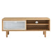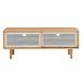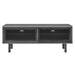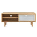 Bring urban flare to your living space with the modern design of the Kurtis 47" TV Stand. Featuring sliding metal mesh doors, this entertainment center brings industrial design to the living room, bedroom, home office, or lounge area. This media stand is crafted from MDF and particleboard with a natural wood grain design. Offering ample storage space for all your media essentials, this TV console features an open shelving area concealed by mesh sliding doors with cable management holes that keep things organized and allow for flow through ventilation. Resting on sturdy wood legs with non-marking foot pads to protect flooring, this low-profile TV stand accommodates flat screen TVs up to 52 inches. Assembly required. Weight Capacity: 137 lbs.