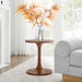 Add a touch of rustic charm to your living space with the Lina Round Wood Side Table. Crafted from solid mango wood, this table boasts a rich wood grain finish that accentuates its natural beauty. With sleek, curved lines, complemented by an elegant tapered pedestal base, this accent table creates a harmonious and inviting design that seamlessly fits into both traditional and contemporary decor. Ideal for holding books, beverages, or a table lamp, the Lina Side Table complements living rooms, office spaces, lounge areas, or entryways. For added practicality and floor protection, this table comes equipped with leveling, non-marking feet. Assembly Required. Weight Capacity: 100 lbs