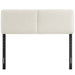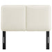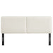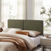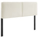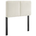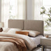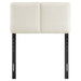 Embrace elegance and comfort with the Lindee Headboard, a statement piece that merges plush comfort with sophisticated design. This fabric headboard is upholstered in textured boucle fabric that offers a tactile charm, and features French piping trim that outlines the dual panels. The dense foam padding and pillow-style design grants a soft, cushioned backdrop for nightly reading or relaxing in bed. Supported by solid wood legs and equipped with multiple mounting positions, this upholstered headboard provides both durability and versatility to fit various bed frames. Lindee is a transformative bedroom upgrade that combines form and function, making it a quintessential element for any restful sanctuary. Assembly required.