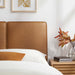 Embrace elegance and comfort with the Lindee Headboard, a statement piece that merges plush comfort with sophisticated design. This faux leather headboard is upholstered in high-quality vegan leather that offers a sleek, modern charm, and features French piping trim that outlines the dual panels. The dense foam padding and pillow-style design grants a soft, cushioned backdrop for nightly reading or relaxing in bed. Supported by solid wood legs and equipped with multiple mounting positions, this upholstered headboard provides both durability and versatility to fit various bed frames. Lindee is a transformative bedroom upgrade that combines form and function, making it a quintessential element for any restful sanctuary. Assembly required.