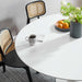 Transform your dining area with the Modway Lippa 60″ Round Dining Table, a mid-century modern icon reimagined for contemporary living. The spacious 60″ round tabletop, crafted from high-gloss MDF with a beveled edge, invites intimate gatherings up to four (comfortably), while maintaining a sleek silhouette. Supported by a slender, tapered metal pedestal base with a chip-resistant lacquered finish, this table elevates both form and function. With non-marking felt pads to protect your floors, it’s a statement piece that’s as practical as it is stylish. Effortless to clean, timeless in design—this is where elegance meets everyday life.