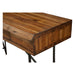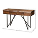 Spectacularly simple, the Live Edge Collection brings together form and function in these industrial-inspired pieces. Writing desk features one drawer for storage. Choosing sustainable wood resources, this group incorporates Acacia wood, metal legs that give stable support with a floating feel, with a warm walnut (brown) finish.