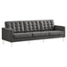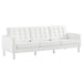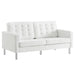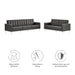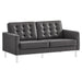 Revolutionize your living room furniture with the iconic Loft Vegan Leather Furniture Set. Adding visual depth to your living room or lounge space, Loft features soft and durable vegan leather upholstery accented with classic biscuit tufting. This modern living room furniture set showcases a captivating linear design, tubular stainless steel legs, and non-marking foot caps that protect flooring. Inspired by the richness of mid-century modern style, this stylish furniture set is an ideal choice for living rooms, office reception areas, and lounge spaces. Assembly required. Set Includes: 1 Loveseat, 1 Sofa
