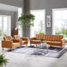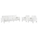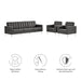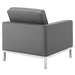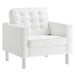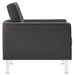 Revolutionize your living room furniture with the iconic Loft Vegan Leather Furniture Set. Adding visual depth to your living room or lounge space, Loft features soft and durable vegan leather upholstery accented with classic biscuit tufting. This modern living room furniture set showcases a captivating linear design, tubular stainless steel legs, and non-marking foot caps that protect flooring. Inspired by the richness of mid-century modern style, this stylish furniture set is an ideal choice for living rooms, office reception areas, and lounge spaces. Assembly required. Set Includes: 2 Armchairs, 1 Sofa