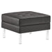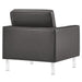 Revolutionize your living room furniture with the iconic Loft Vegan Leather Armchair and Ottoman Set. Adding visual depth to your living room or lounge space, Loft features soft and durable vegan leather upholstery accented with classic biscuit tufting. This modern living room furniture set showcases a captivating linear design, tubular stainless steel legs, and non-marking foot caps that protect flooring. Inspired by the richness of mid-century modern style, this stylish furniture set is an ideal choice for living rooms, office reception areas, and lounge spaces. Assembly required. Set Includes: 1 Armchair, 1 Ottoman. Weight Capacity of Each: 330 lbs.