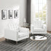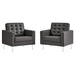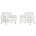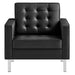 p Revolutionize your living room furniture with the iconic Loft Vegan Leather Armchairs Set of 2. Adding visual depth to your living room or lounge space, Loft features soft and durable vegan leather upholstery accented with classic biscuit tufting. This modern accent chair set showcases a captivating linear design, tubular stainless steel legs, and non-marking foot caps that protect flooring. Inspired by the richness of mid-century modern style, these upholstered chairs are an ideal choice for living rooms, office reception areas, and lounge spaces. Armchair Weight Capacity: 330 lbs.