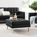 Revolutionize your living room furniture with the iconic Loft Vegan Leather Ottoman. Adding visual depth to your living room or lounge space, Loft features soft and durable vegan leather upholstery accented with classic biscuit tufting. This modern ottoman showcases a captivating linear design, tubular stainless steel legs, and non-marking foot caps that protect flooring. Inspired by the richness of mid-century modern style, this upholstered ottoman is an ideal choice for living rooms, office reception areas, and lounge spaces. Ottoman Weight Capacity: 330 lbs.
