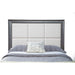 The Lorraine Storage Platform Bed combines function and contemporary style. Made from Pine solids, and finished in Dark Gray, the striking headboard features a cream-colored fabric insert. The two storage drawers in the footboard are accented by distinctive nickel vertical handles. This platform bed can be used with only a mattress, no box spring required. Available in multiple sizes. Coordinates with other pieces from the Alpine Furniture Lorraine bedroom collection sold separately.