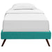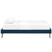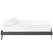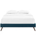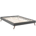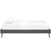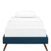 Accelerate your bedroom decor with the Loryn Platform Bed. Made with a solid wood frame upholstered in polyester fabric, Loryn features tapered wood legs, plastic foot glides, ten sturdy wood slats with a centered supporting bar and two support legs for enhanced stability. Due to the wooden slat support system, the use of a box spring is unnecessary. Loryn supports memory foam mattresses such as our Aveline series, and is compatible with one of our headboard styles: Jessamine, Terisa, Laura, Phoebe, Camille, and Josie. Perfect for mid-century modern, minimalist and contemporary bedrooms. Mattress not included.