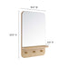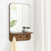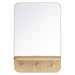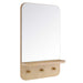 As stylish as it is functional, the Lumina Mirror features rounded corners, a rectangular profile, small shelf, and three pegs making it a must-have for the entryway, hallway, or mudroom. Bringing a touch of modern style and elegance to your space, this mirror offers organization and storage for keys, dog leashes, hats, and a variety of other small items. Crafted from mindi wood and particleboard with a wood grain laminate, this all-in-one mirror is made to last and offers a charismatic touch to any home or apartment. Its sleek, modern design and wood grain aesthetics are sure to turn heads and make a statement. Minimal assembly required.