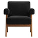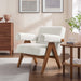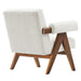 Add comfort and style to your home with the Lyra Boucle Fabric Upholstered Armchair. This accent lounge chair is chic and luxurious, featuring a relaxed design with a subtly angled backrest. Lyra comes upholstered in boucle fabric, creating a comfortable resting spot where you can dive into a good book or enjoy a cup of coffee. Featuring a sturdy plywood frame, inverted V-shaped rubberwood legs, and dense foam padding, this modern armchair provides stability while enhancing living room, bedroom, hallway, or entryway spaces. Includes non-marking feet. Assembly Required. Weight Capacity: 330 lbs.