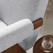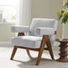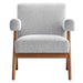 Add comfort and style to your home with the Lyra Heathered Fabric Upholstered Armchair. This accent lounge chair is chic and luxurious, featuring a relaxed design with a subtly angled backrest. Lyra comes upholstered in woven heathered fabric, creating a comfortable resting spot where you can dive into a good book or enjoy a cup of coffee. Featuring a sturdy plywood frame, inverted V-shaped rubberwood legs, and dense foam padding, this modern armchair provides stability while enhancing living room, bedroom, hallway, or entryway spaces. Includes non-marking feet. Assembly Required. Weight Capacity: 330 lbs.