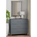 Add modern flair to your bedroom with the Madelyn Slate Gray 3-Drawer Small Chest. Providing storage for your essentials, this piece is crafted from sustainably sourced Mahogany. Features include a felt-lined top drawer, English dovetail construction and metal ball bearing drawer glides. The clean lines and beautiful finish blend effortlessly in any decorating scheme. Coordinates with other pieces in the Alpine Furniture Madelyn bedroom collection sold separately.