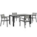 Bordered by the Atlantic Ocean rests the Maine Outdoor Patio Dining Furniture Collection. Distinguished by its synthetic wood grain plank boards, powder-coated aluminum frame, inspired design, and rich organic feel, Maine Outdoor Dining Set stands out as a versatile series for outdoor dining. This contemporary modern patio dining set is perfect for contemporary patios, backyards, poolside, and other outdoor lounge areas.