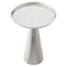 Dive into the world of chic modernity with the Maren Round Side Table. Crafted with sleek iron, this end table stands on a polished conical pedestal base. Its tabletop features a pronounced raised rim, offering visual appeal while echoing its industrial inspiration. Whether positioned beside a sofa, next to a lounge chair, in a home office, or as a standout decor piece in an entryway or hallway, this accent table captures attention with its refined look. It comes equipped with a non-marking pad on its base to help your flooring stay pristine and free from scuffs and scratches. Assembly required. Weight Capacity: 88 lbs.