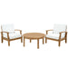 Harbor your greatest expectations with the luxurious Marina Teak Wood Outdoor Patio Furniture Sofa Sectional set. Marina Patio Furniture series has a seating arrangement perfect for every member of your crew as you breathe the fresh, crisp air of a day spent with friends and family. Known for its natural ability to withstand extreme weather conditions, teak is the wood selection of choice for long-lasting outdoor patio furniture. Now you can enjoy Marina Teak Wood Outdoor Sectional Sofa set with its durable construction and all-weather cushions, alongside a modern design that persistently looks new and welcoming in your patio seating environs. Assembly required.