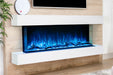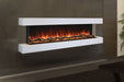 Inside the mantel is Modern Flames Landscape 44'' 3-Sided Linear Electric Fireplace. This Electric Fireplace features independent or sync flame, up lighting, down lighting and 5,000 - 10,000 BTU supplemental heater. Included media are: Clear Acrylic Crystals, Grey Smoke Acrylic Crystals and Elegant Hand Painted Driftwood Logs. Modern Flames 58'' Electric Fireplace White Ready to paint Studio Suite provides ultra-bright RGB LED lights technology projecting amazing realistic flames. Down lighting enhances the driftwood log set as well an active ember bed. A New vibrant back screen enhances the flame color to keep a crisp look even in direct sunlight. This unit allows you to change Flame Color, Ember Bed and Down Lighting Colors independently or in sync. The controls include a standard multi-function hand held RGB remote or control the Landscape Pro Multi with your phone by downloading the Modern Flames remote app. Set the Off Timer with Wireless Thermostat Control or Modern Flames App. Easy Smart Home Integration with the use of Modern Flames App: Alexa or Google can control your fireplace! Use your Modern Flames Landscape Pro Multi Electric Fireplace any time of year: flames can operate with or without heat. Make a dramatic design statement in your home or office with impressive, stylish modern Landscape Pro Multi 3-Sided Electric Fireplace with White Studio Suite.