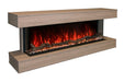 Inside the mantel is Modern Flames Landscape 44'' 3-Sided Linear Electric Fireplace. This Electric Fireplace features independent or sync flame, up lighting, down lighting and 5,000 - 10,000 BTU supplemental heater. Included media are Clear Acrylic Crystals, Grey Smoke Acrylic Crystals and Elegant Hand Painted Driftwood Logs. Modern Flames 58'' Electric Fireplace Studio Suite in Sand Laminated Finish provides ultra-bright RGB LED lights technology projecting amazing realistic flames. Down lighting enhances the driftwood log set as well as an active ember bed. A new vibrant back screen enhances the flame color to keep a crisp look even in direct sunlight. This unit allows you to change Flame Color, Ember Bed and Down Lighting Colors independently or in sync. The controls include a standard multi-function hand held RGB remote or control the Landscape Pro Multi with your phone by downloading the Modern Flames remote app. Easy Smart Home Integration with the use of Modern Flames App: Alexa or Google can control your fireplace! Use your Modern Flames Landscape Pro Multi Electric Fireplace any time of year: flames can operate with or without heat. Make a dramatic design statement in your home or office with an impressive, stylish modern Landscape Pro Multi 3-Sided Electric Fireplace with Wall Mount Studio Suite in Coastal Sand Finish.