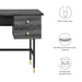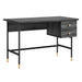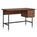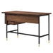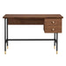 Focus on the task at hand amidst the modern style and functional design of the Nexus Office Desk. Crafted with particleboard and paper laminate that boasts a beautiful wood grain design, this computer desk brings organic aesthetics to your workspace. The sleek tubular metal frame is finished with gold accents for an elegant touch. This home office desk is complete with two full-glide drawers to store office essentials, while the spacious tabletop provides plenty of room to spread out during the work day. With a timeless look and functional design, this desk is a stylish addition to a home office, college dorm, or spare bedroom. Assembly required. Weight capacity: 200 lbs.