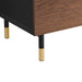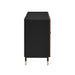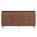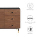 Bring modern style and functional design to your living space with the Nexus Sideboard. This storage cabinet is crafted with high-grade particleboard and wood grain laminate that brings an organic aesthetic to its surrpundings. Resting on tubular metal legs with gold accents, the spacious design of this entertainment console provides ample concealed storage space with open shelving hidden behind two hinged drawers and three full-glide drawers. A versatile storage solution, this buffet table can also be used as a high TV stand that can accommodate TVs up to 65 inches. Assembly required. Weight capacity: 110 lbs. Please Note: When placing the TV directly on the unit, we recommend anchoring it in place.