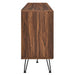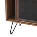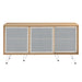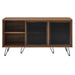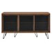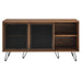 Urbanize your living space with the modern style of the Nomad Sideboard. Featuring three sliding metal mesh doors, this credenza doubles as a tall TV stand and brings organic aesthetics and industrial design to the living room, dining room, or lounge area. This buffet table is crafted with a honeycomb core and wood grain laminate. Resting on splayed hairpin legs with non-marking rubber pads, this versatile sideboard offers ample storage space for china, linens, media essentials, and more with spacious shelving. This entertainment center can accommodate TVs up to 65". Assembly required. Weight Capacity: 200 lbs. Please Note: When placing the TV directly on the unit, we recommend anchoring it in place.