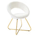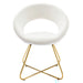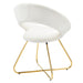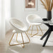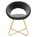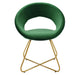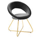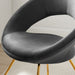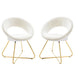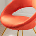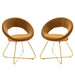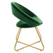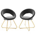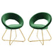 The Nouvelle Performance Velvet Dining Chair Set of Two is a buoyant and intriguing fusion of shapes that energizes your dining space, living room, or bedroom. This beautifully balanced side chair set fits well in modern, contemporary, or minimalist settings. The rounded backrest, upholstered in stain-resistant performance velvet fabric, flows seamlessly into the circular seat cushion for a profoundly satisfying effect. Bolstered by dense foam padding, the contoured seat rests on polished gold hairpin legs, rendering this a whimsical accent chair for your dining room or entryway. Legs are fitted with non-marking foot pins.