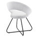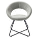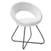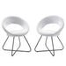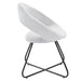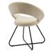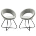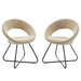 The Nouvelle Upholstered Fabric Dining Chair Set of Two is a buoyant and intriguing fusion of shapes that energizes your dining space, living room, or bedroom. This beautifully balanced side chair set fits well in modern, contemporary, or minimalist settings. The rounded backrest, upholstered in soft polyester fabric, flows seamlessly into the circular seat cushion for a profoundly satisfying effect. Bolstered by dense foam padding, the contoured seat rests on powder-coated black metal hairpin legs, rendering this a whimsical accent chair for your dining room or entryway. Legs are fitted with non-marking foot pins.