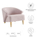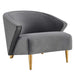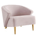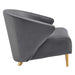 Endless comfort and structural elegance are the distinguishing features of the Odyssey Performance Velvet Armchair. This mid-century modern accent chair, standing impressively on brushed gold stainless steel legs, transforms entryways, bedrooms, and lounge spaces. Smoothly upholstered in stain-resistant performance velvet fabric, the Odyssey living room armchair is highly appealing in mid-century modern or eclectic decors. Ensconce yourself in the superbly contoured backrest and seat made plush with dense foam padding and a webbed support system. Odyssey entices for afternoon naps or pre-bedtime reading. This mid-century armchair is fitted with non-marking foot glides to protect your floors. Assembly required. Weight Capacity: 331 lbs.