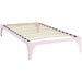 Transform your bedroom decor with the Ollie Bed Frame. With a slatted wood support system and sturdy steel frame, Ollie eliminates the need for a boxspring and firmly supports the various mattress types on the market such as memory foam, spring, latex and hybrid. Featuring graceful legs with non-marking foot pads, Ollie is a well-made durable bed built to last. Ollie holds a weight capacity of up to 1300 lbs, and showcases a sleek minimalist design perfect for the modern home. Mattress Not Included.